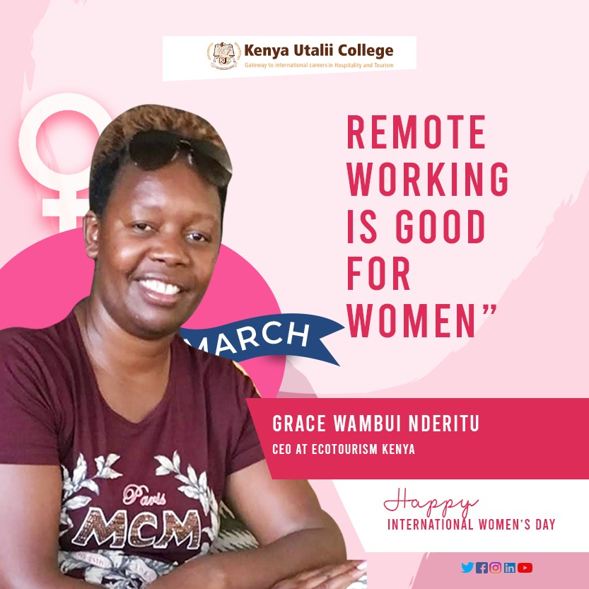 Ms. Grace Nderitu is the Chief Executive Officer, Eco-Tourism Kenya. She urges women to embrace the use of technology, which will enable them to work remotely from any part of the world.